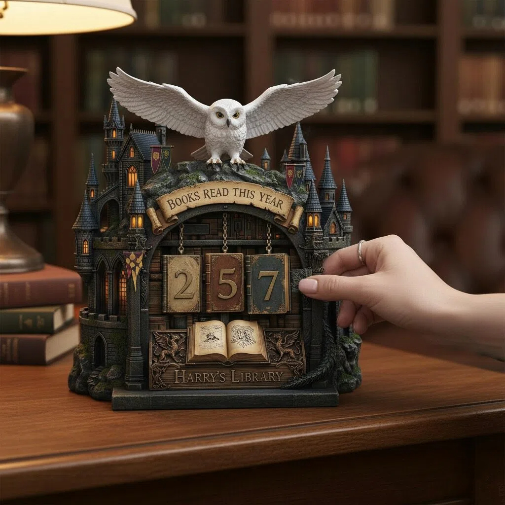 Bring the magic of the Wizarding World into your home library. Inspired by the iconic architecture of Hogwarts and the wisdom of snowy owls, this Harry Potter–themed personalized reading tracker transforms your reading journey into a spellbinding display.