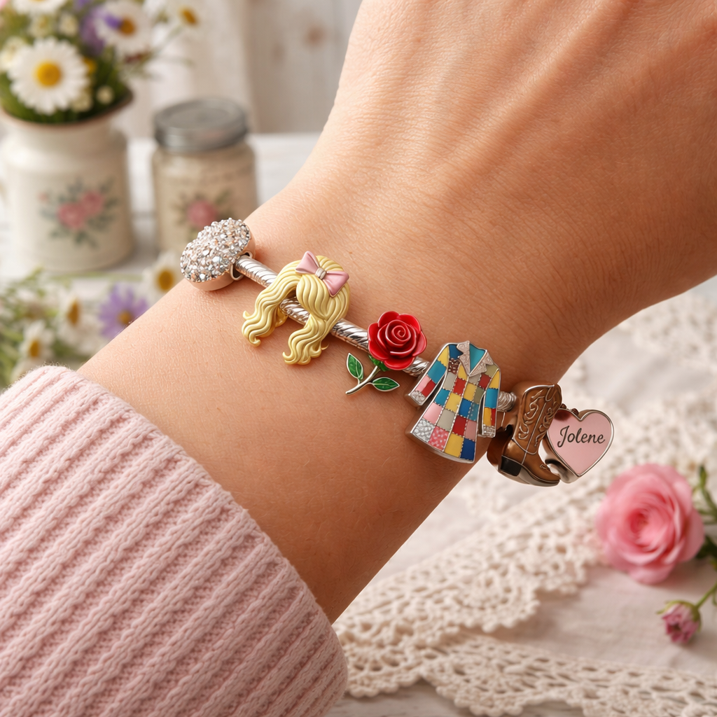 Each charm tells a story of creativity, kindness, and individuality, capturing the warmth and confidence that define her legacy.